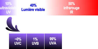 Ce rayonnement solaire est constitué de trois types de radiations qui se mesurent tous en nanométres (nm):